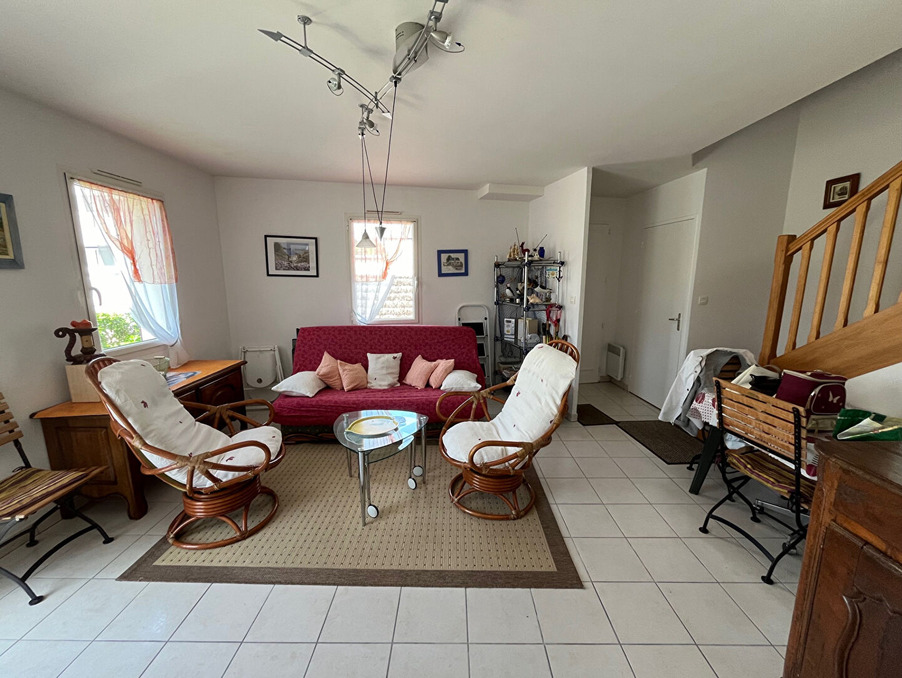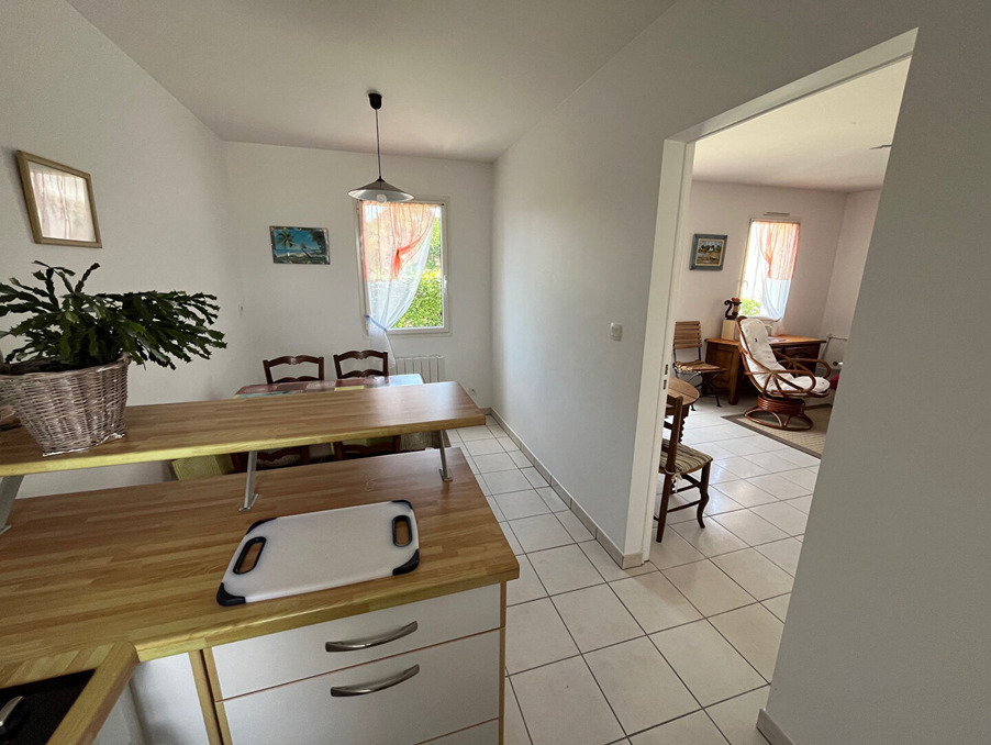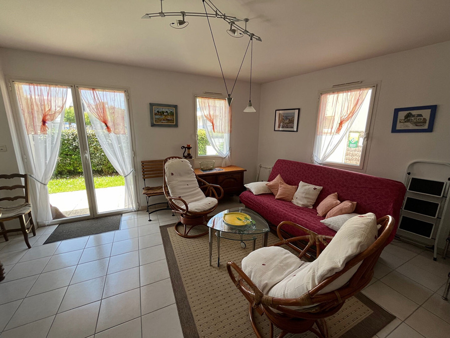 Au centre de Quimiac et à 400 m de la plage de Lanséria, maison comprenant au RDC, Séjour donnant sur jardinet avec terrasse, cuisine indépendante aménagée et équipée, arrière cuisine à usage de rangement et buanderie, WC, à l'étage, palier desservant 2 chambres, une salle d'eau et un WC séparé. Garage. (4.00 % d'honoraires TTC à la charge de l'acquéreur.)